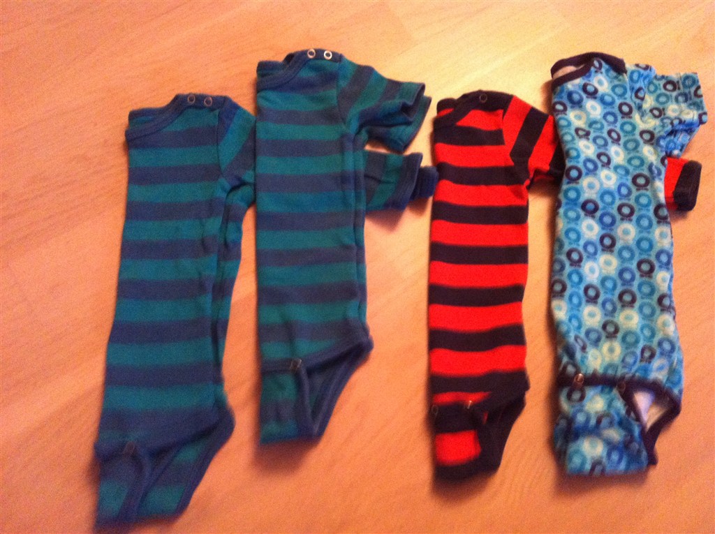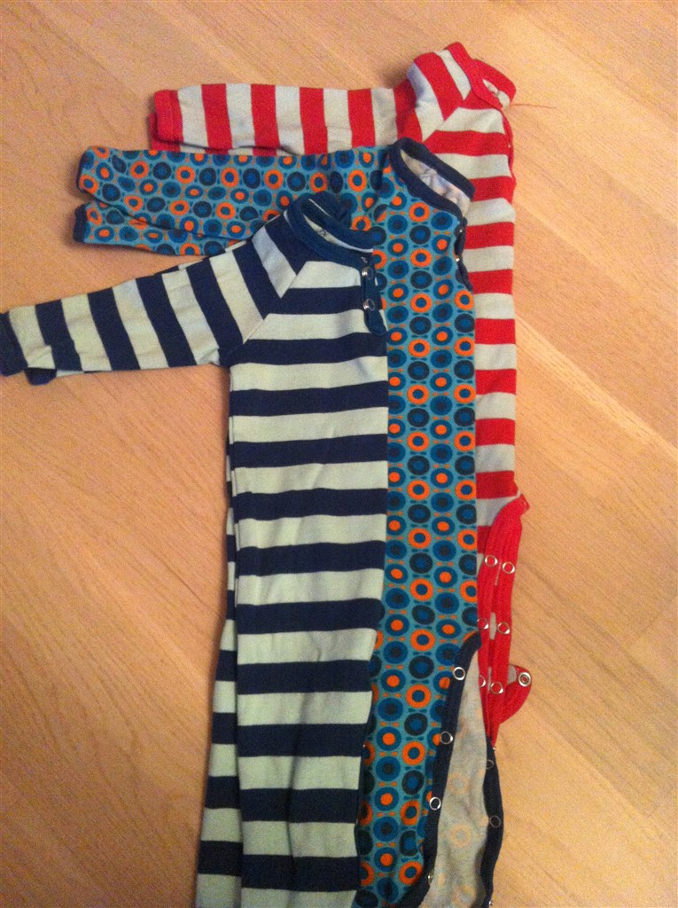 14. body blå strib lang+kort str.62, body rød/marine strib str.56, body æbler str.68, katvig- str. velholdt 56+68 som ny