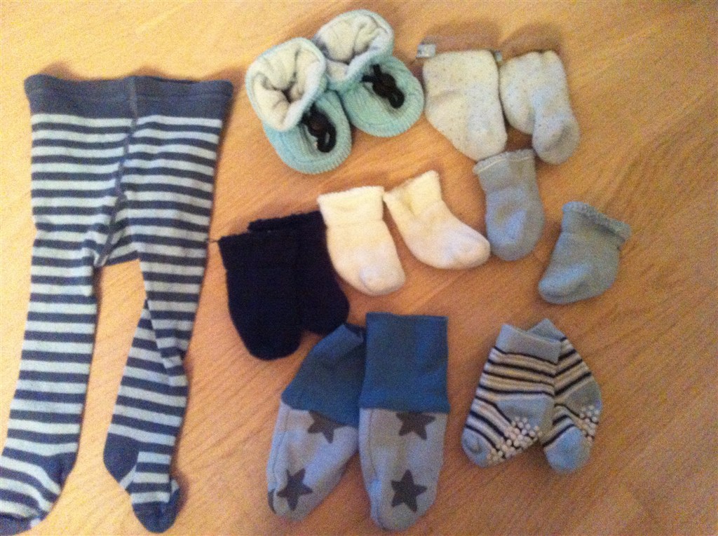 36. 5x strømper+vanter+hjemmesko+strømpebuks, melton (vanter joha) str. 50/56 velholdt