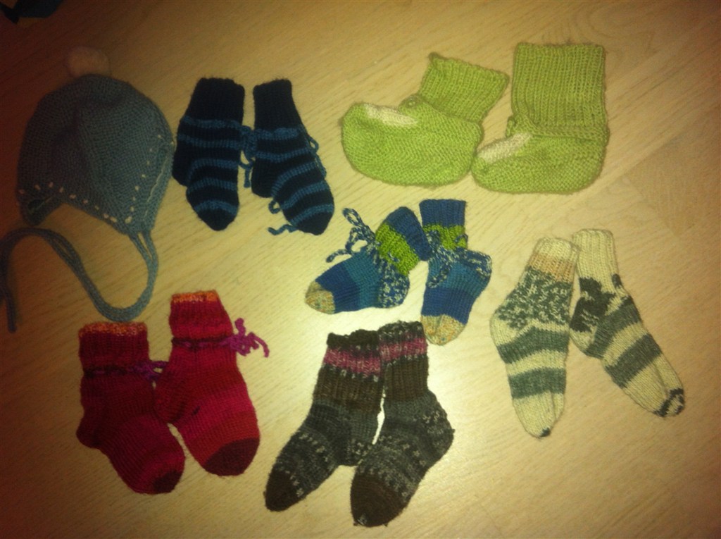 44. hue+6x sokker, hjemmestrik ca.50-62
