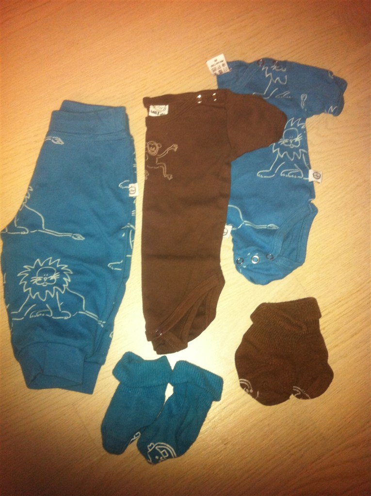 45. buks+2x body+2xsokker, Ida T, buks+brun body str.62 blå body str. 56 sokker små