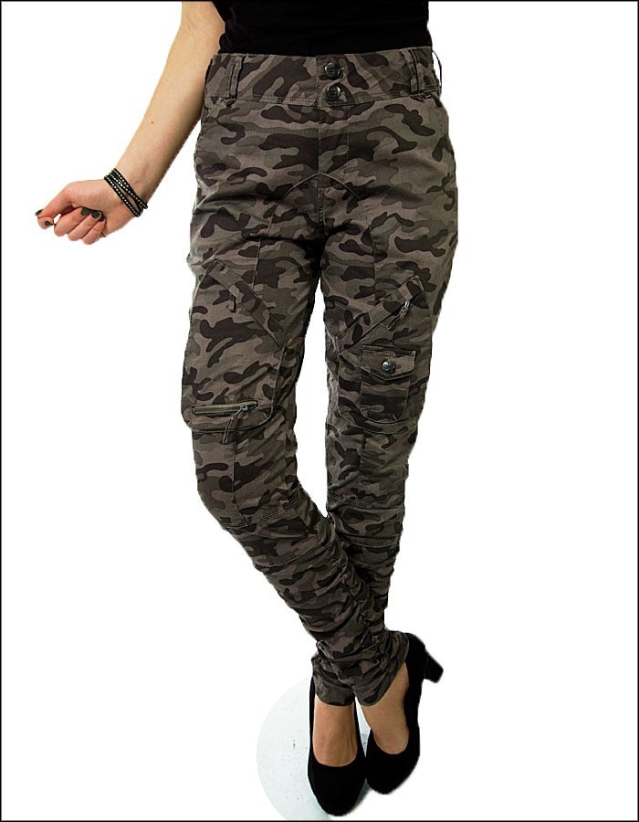 Cultures meget populære Malou bukser - her i camuflage print. Lækre bukser i 7/8 længde med smock-elastik nederst på benene. Asymmetrisk syet lomme på lår og to små ekstra lommer - den ene med lynlås og den anden med knap. Kvaliteten er 98% bomuld, og 2% elasthan