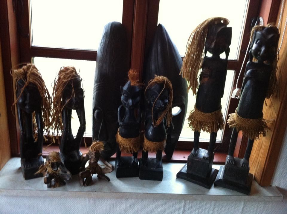 4 X 35 cm figurer 2x 53 cm figurer 2 masker af ca 50 cm 2 mini figurer af ca 12 cm