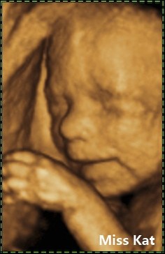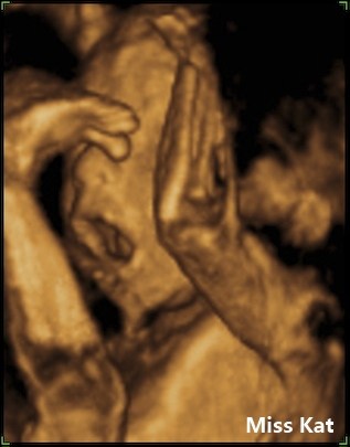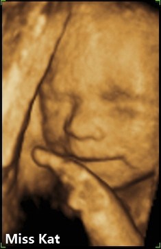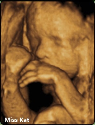 Jeg er jo kun i 24. uge, men hun var så smuk og det mest perfekte lille menneske. Og hold da op, hvor var der spræl i hende! Vi fik set en hel masse forskellige grimasser og bevægelser, og både et gab og at hun suttede på tommelfinger.