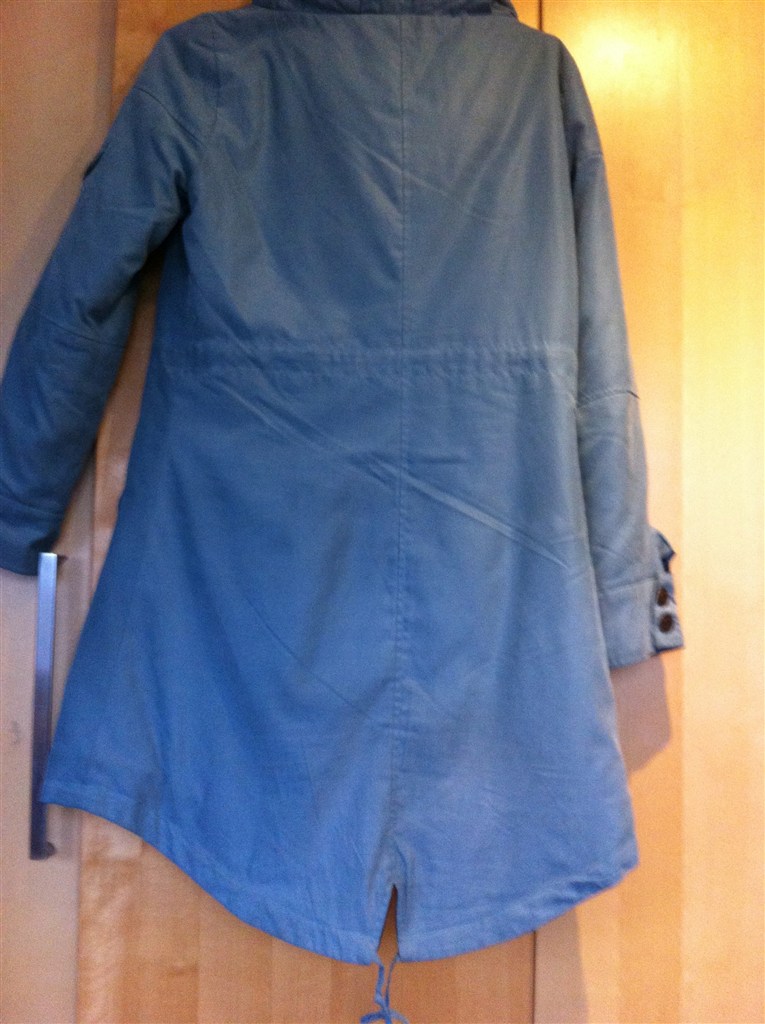 Lækker jakke fra St-martin. Brugt meget lidt og i virkelig flot stand. Har hætte i kraven, bindesnor i talje og super flot fór i.