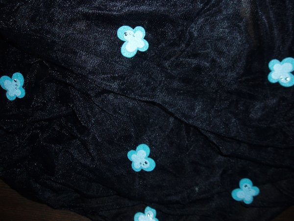 Malthesmoar skriver:Sort net m blå sommerfugle i filtOnesize til klap/barnevognUbrugt120kr+14,50kr i porto