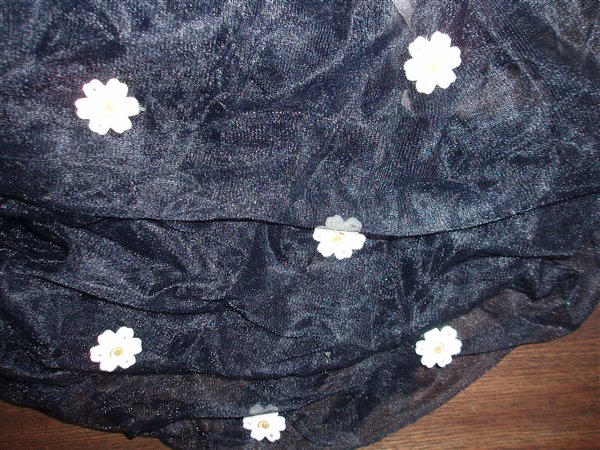Malthesmoar skriver:Sort net m råhvide blomster i filtOnesize til klap/barnevognUbrugt120kr+14,50kr i porto