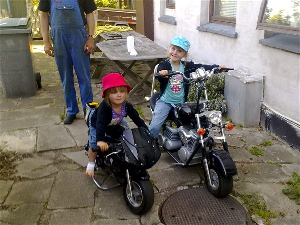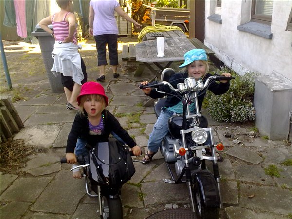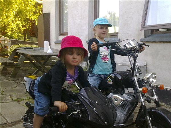 Ha ha LOL, det var da et fantastisk biker-chick billede. Det bliver da ikke nemt at holde banditterne fra døren når de bliver større.