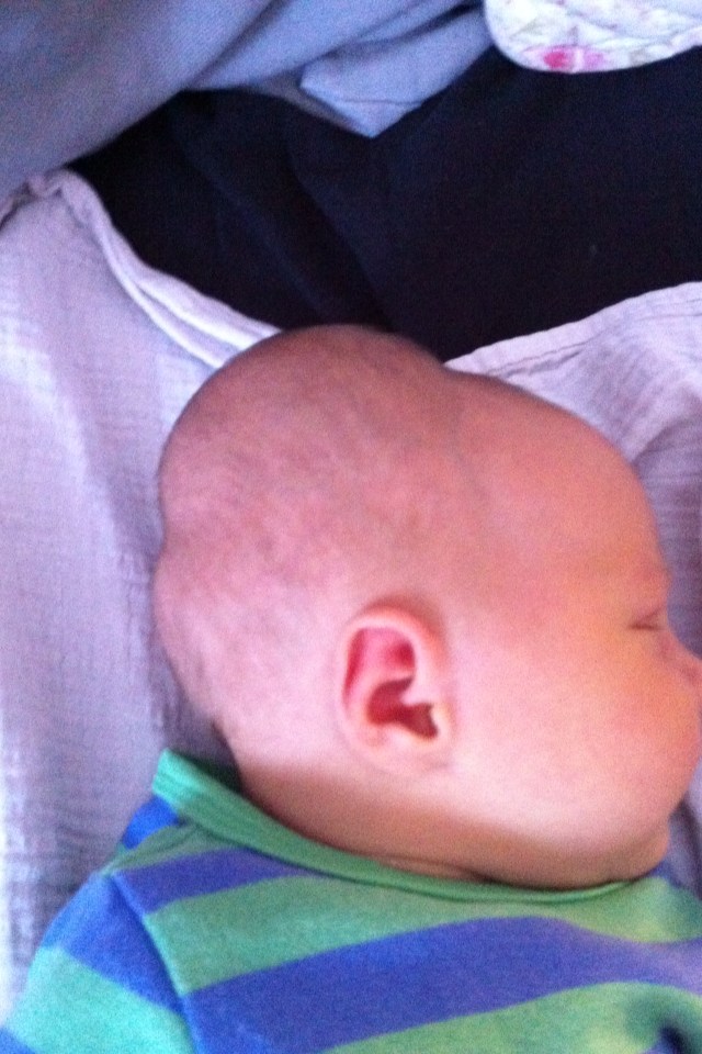 Trods hans unge alder har vi allerede haft ham til lægen.. Da han kom ud havde han en ordentlig fødselsvulst på hovedet.. JM mente den ville forsvinde efter 1-2 dage, da det var meget normalt.. Da vi så kom ud på sygehuset 2 dage efter til PKU og hørescreening, var den stadig lige så stor og hende jm som var der, mente der nok vil gå en lille uge, hun fik dog en børnelæge, en sygeplejerske og anden jm til at se på den også, og de blev alle enige om at den var ganske ufarlig, men hvis den ikke var aftaget efter en uges tid, kunne vi lige prøve at kontakte lægen... Og det gjorde den ikke.. Så vi måtte en tur til lægen for lige at få tjekket at det ikke var noget andet grisk.. Hun var nu også ganske enig i at den var ufarlig, så længe den ikke voksede og han ikke blev sløj var der ingen grund til bekymring.. Så vi nåede lige at blive lidt urolige.. Den ser også lidt vild ud, men de mener det er fordi han har stået skævt på mit bækken i lidt over en måneds tid, så det er derfor jeg har været så øm, og derfor fødslen blev så hård...