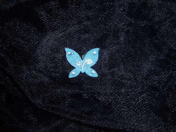 Malthesmoar skriver:Sort net m blå sommerfugle i filtOnesize til klap/barnevognUbrugt120kr+14,50kr i porto Se andre motiver på andre annoncer