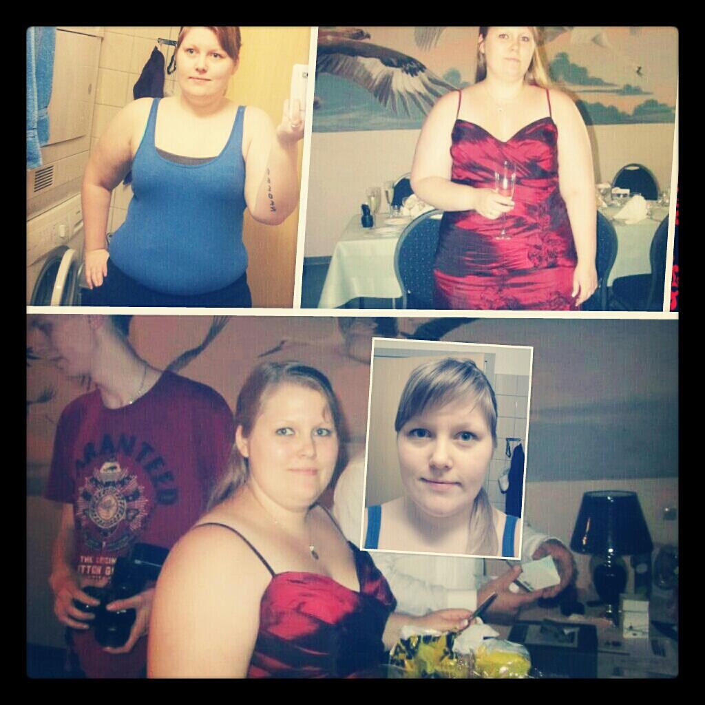 IsabellaCiinea skriver: Ville bare lige vise før og efter billeder.. I den røde kjole er vægten 104kg.. I den blå top er vægten 94kg (Nu er jeg så nede på 92kg )
