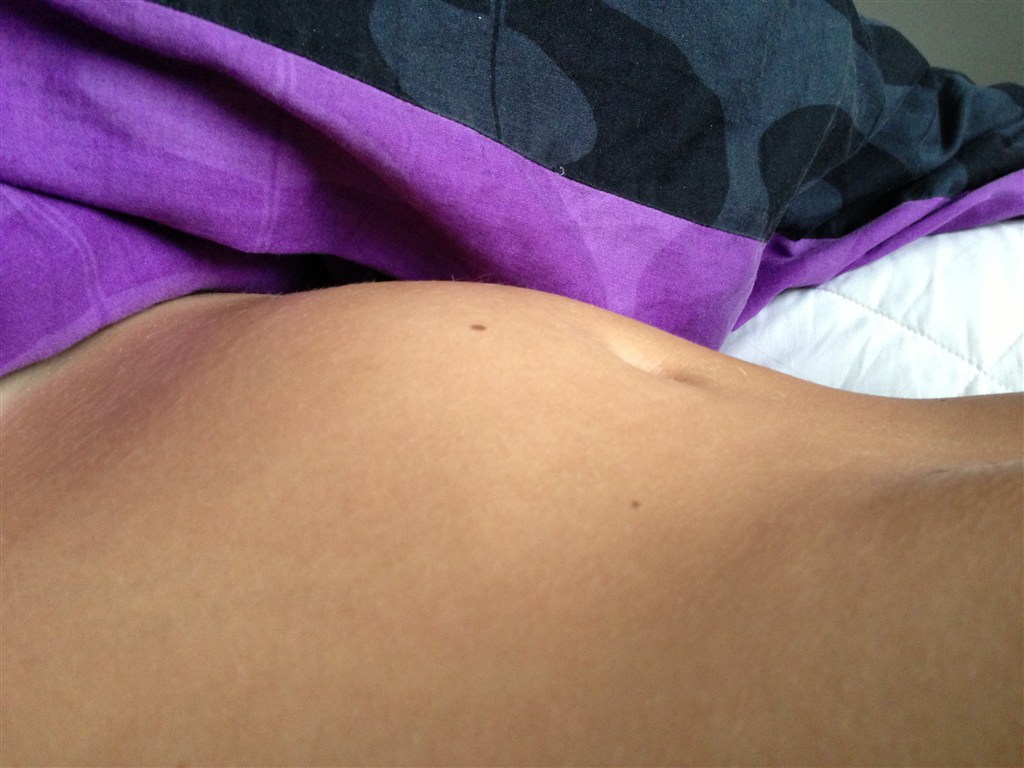 Synes maven begynder at tage form, og nu kan man også se det når jeg ligger ned.
