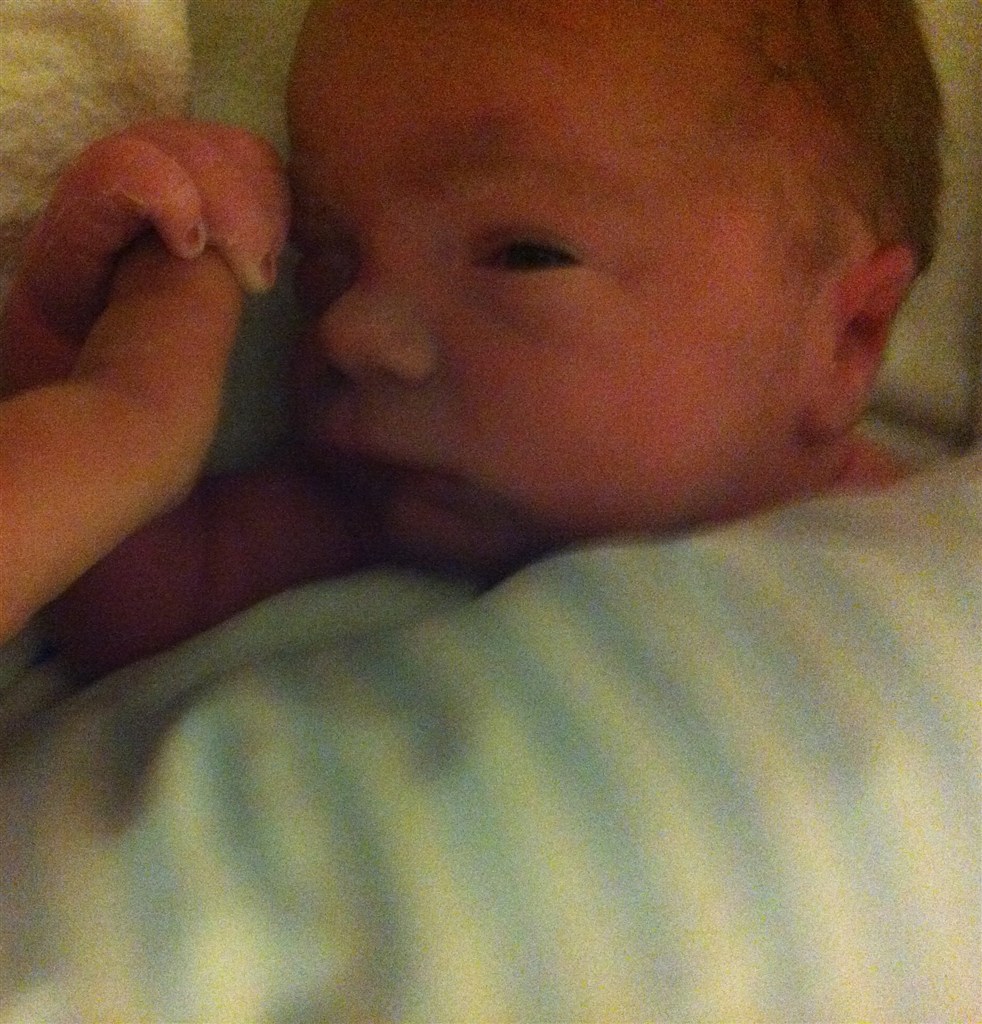 så vi blev forældre til en skøn dreng, født præcis i uge 34, d. 7 februar kl. 23.27 på 2438 g. og 48 cm, han scorede apgar 10 hele vejen og han har taget det hele i stiv arm. Vi var indlagt i 14 dage på neonatalafd. da han lige skulle lære at spise, da han ikke havde en sutterefleks pga. den tidlige fødsel + han lige havde et par dage i lys pga. gulsot.