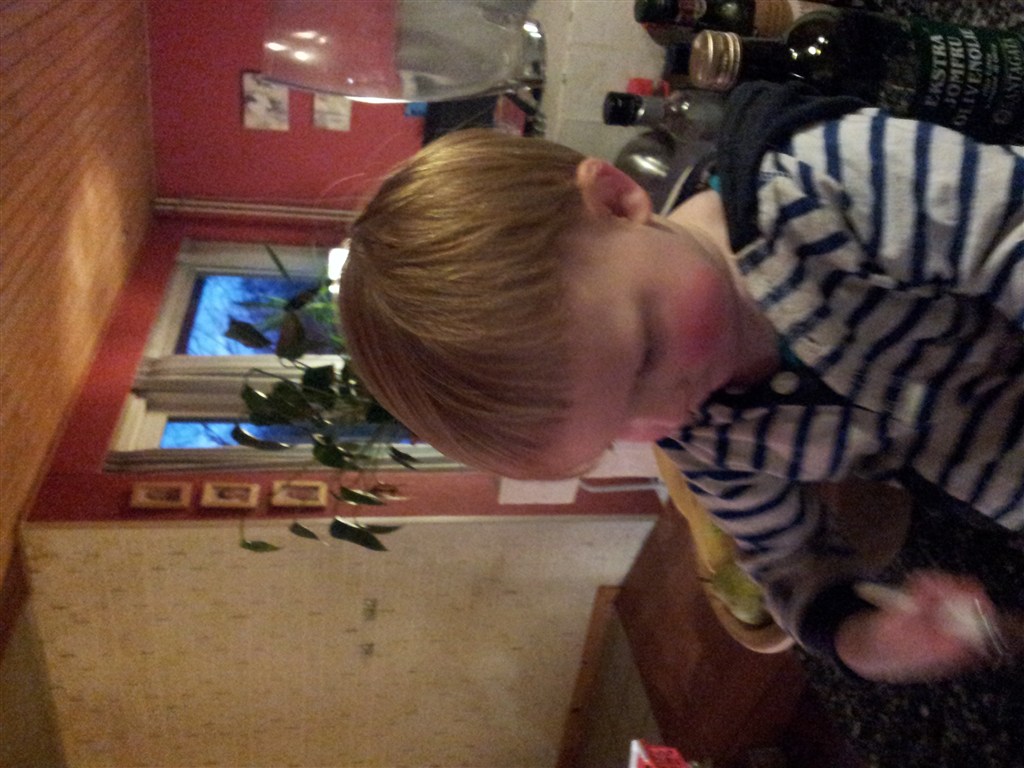 Så prøve vi lige at klippe ham. Jeg har snakket længe om at få ham klippet. Men far siger det kan vi selv så det gjorde han så:-(:-)