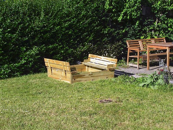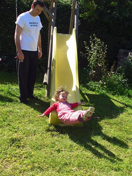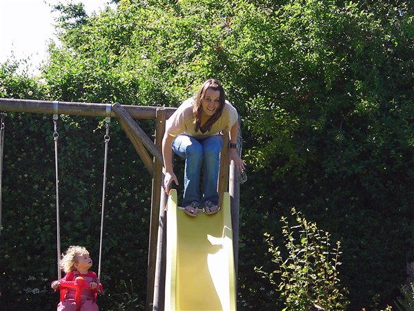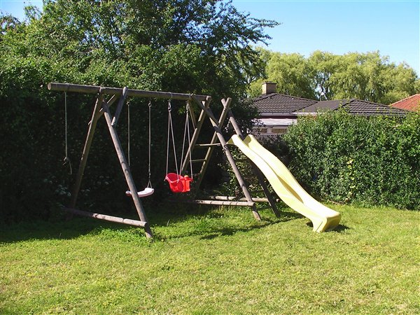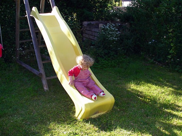 En rigtig lækker rutchebane som kunne sættes på gyngestativet + en sandkasse.