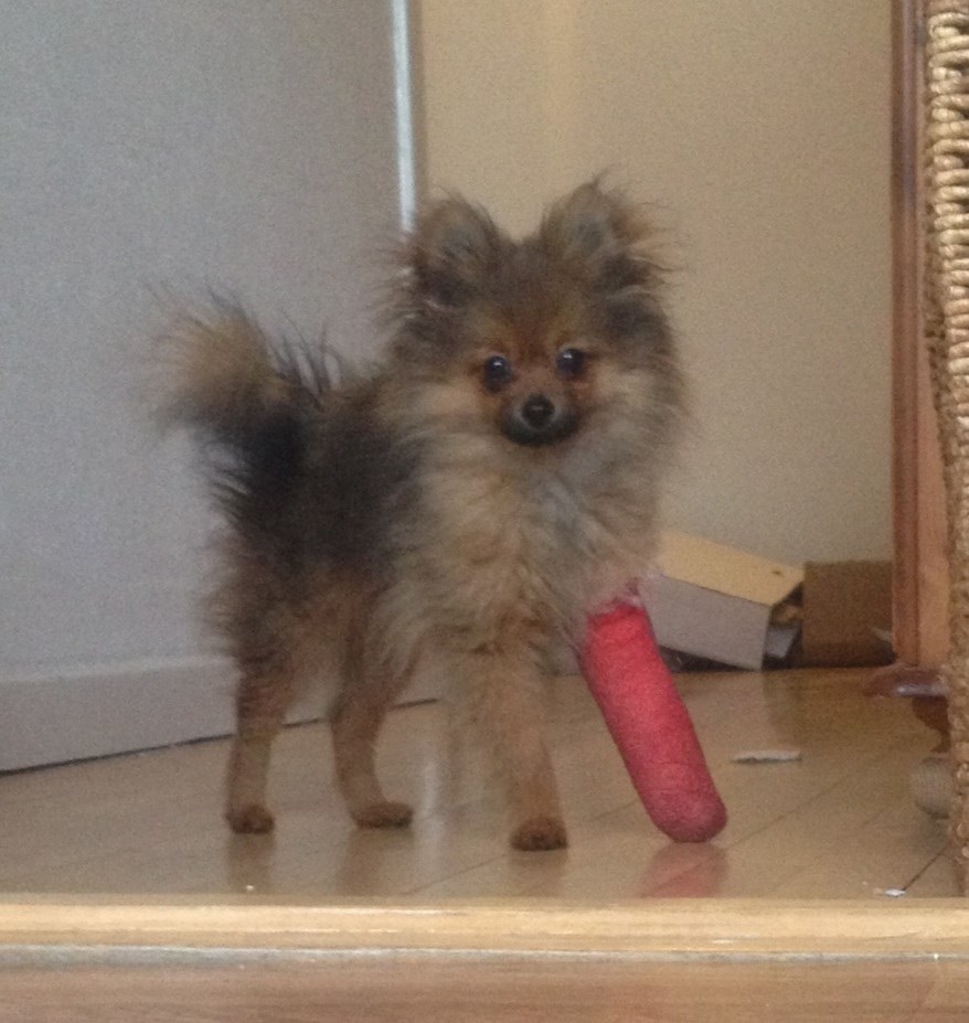 Hej alle. Vi skal desværre af med vores skønne lille Kira på ca 6 måneder. Kira er ren pormersnerian med stamtavle og det hele. Vi bor i lejlighed og hun gør når fedt kommer folk ind i opgangen. Det er virkelig ikk meget og hun er nem at stoppe, men det går ikke med vores naboer. Vi har haft Kira fra hun var 9 uger gammel og hun er SUPER sød og kærlig. Hun er vandt til børn, store hunde og alt hvad der foregår i en almindelig hverdag med børn. Vores pige på halvandet og Kira elsker at lege sammen, så det er med står sorg vi må skille os af med hende. Kira brækkede sit ene forben for ca 7 uger siden - det burde snart være på toppen igen. Hun er blevet scanner jævnligt og har gået med forbinding siden. Vi vil gerne give et afslag i prisen, hvis man køber Allerede nu. Ellers forestiller vi os en pris på 7000. Kira bor i Hedehusene.