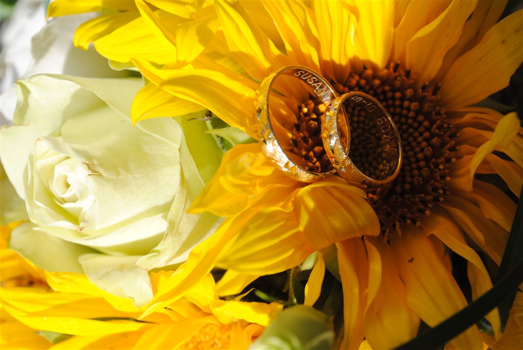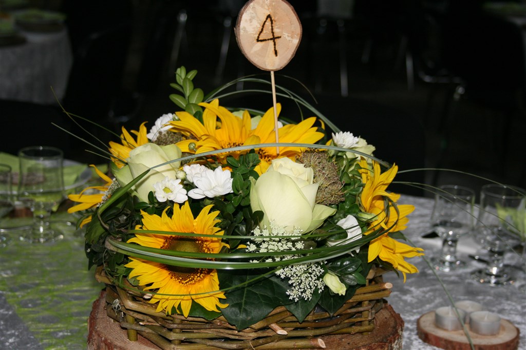 - Min mor er genial til blomster og lavede alle borddeko og brudebuket + kirkepynten