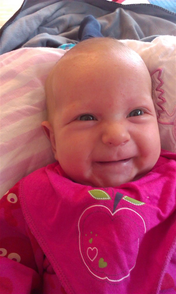 Fødselsvægt var 4050 g og 53 cm så hun er en dygtig sulten baby med mange smil og lyde og nyder hende i fulde drag