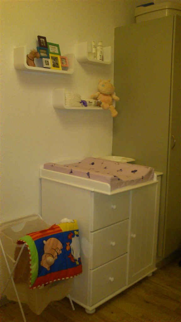 jeg ville sætte nogle billeder el wall stickers op på væggen med plys hvis det var mig ( gjorde jeg da min dreng var baby)