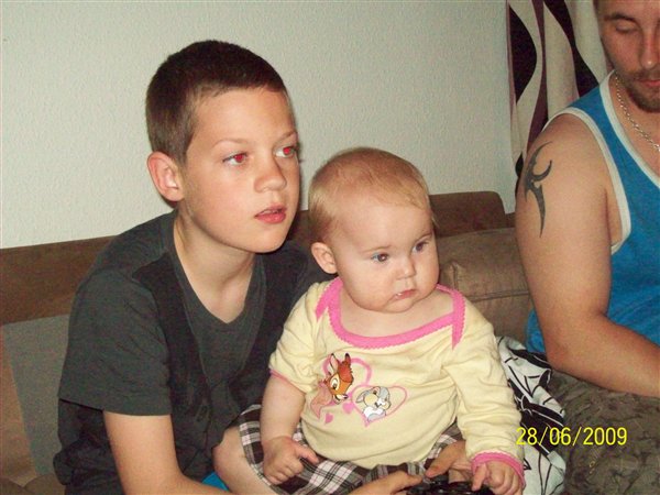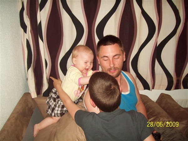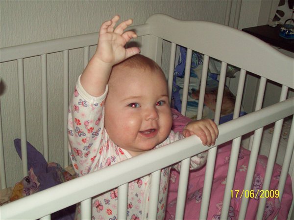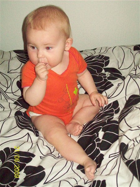 Cassandra elsker at bade og lege med farmand. I den orangebody er hun 46 uger gammel. Der hvor Cassandra er hod Jannick, og de begge kigger fremad, han spiller ps2 og Cassandra er helt med