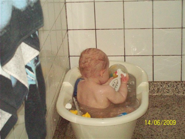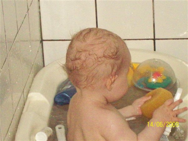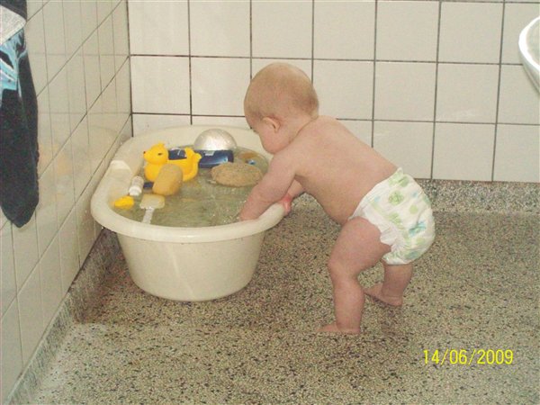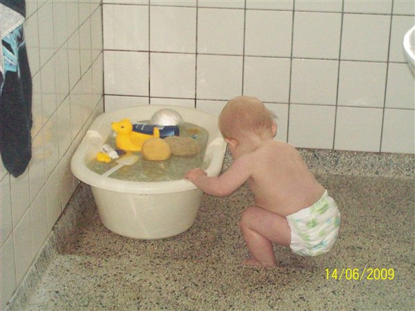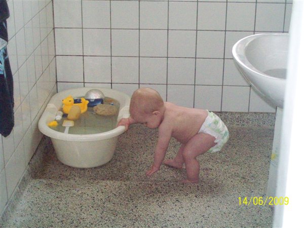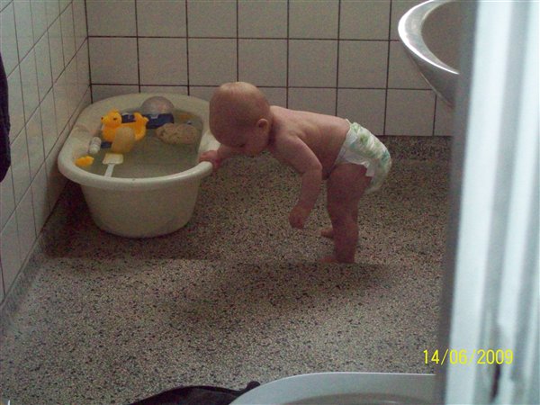 Det er JAcob der har puttet hende i badekaret, hun er ikk selv gået op i det.