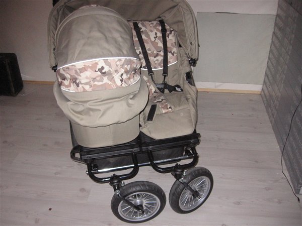 Det er en tvilligeklapvogn,hvor det ene sæde+ kaleche kan fjernes og istedet kan der påsættes en barnevognsdel.