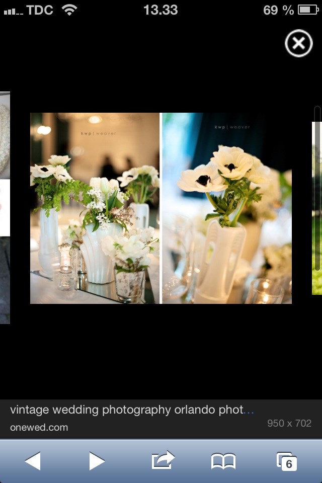 Nå men på baggrund af kjolestilen, har jeg/vi overvejet at hele brylluppet skal have vintagestilen. Jeg forestiller mig et pyntet bord primært i nuancer af hvid, elfenben, beige og champagne. Derudover tænker jeg genbrug! Opshine diverse glas fra syltede agurker, rødbeder og syltetøj samt en masse forskellige vaser i flere former og størrelser!