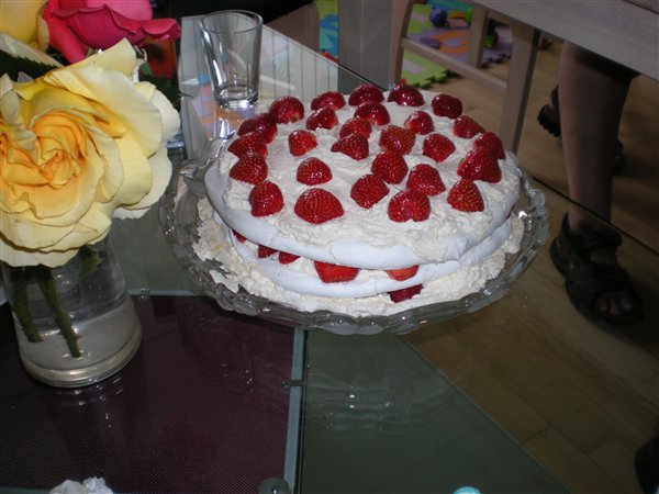 Vi fik jordbær lagkage mums, elsker jordbær og så i sted for småkager så havde jeg købt noget frugt, ananas, ferskner, vandmelon og vindruer, og folk var jo helt vilde, og så noget juice til, dejlig sommer mad hvis man kan kalde det det, var i hvert fald frisk i sted for tøre kager