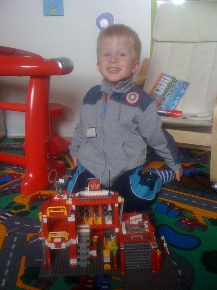 Så sent som igår byggede jeg denne brandstation med 702 klodser, en brandbil, en helikopter og en båd til Elias - tog nogen timer vil jeg pointere - pyh, men pt. er det der hitter hos os. Brandbiler og vejmaskiner. Vi fik sættet billigt 280kr. på kræmmermarkedet på Tangkrogen i Aarhus i forgårs