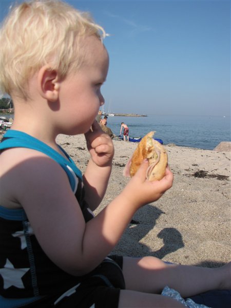 og smurte sandwich og tog til stranden..  og jeg var selv i vandet - kæft det var godt.. men fotografen kan desværre ikke både svømme og tage billeder af sig selv.
