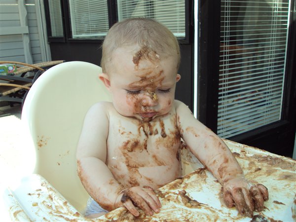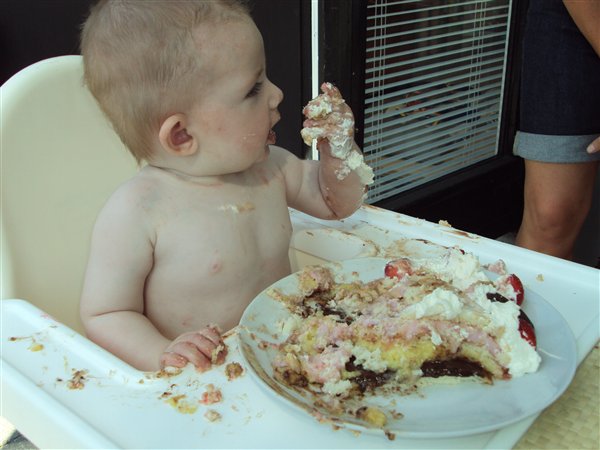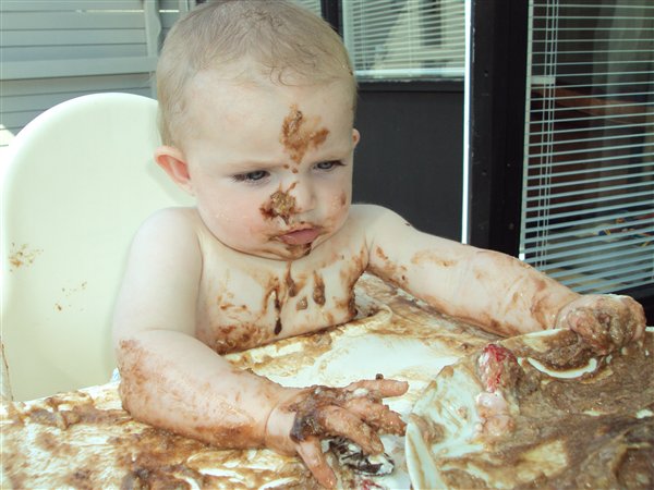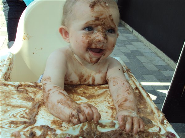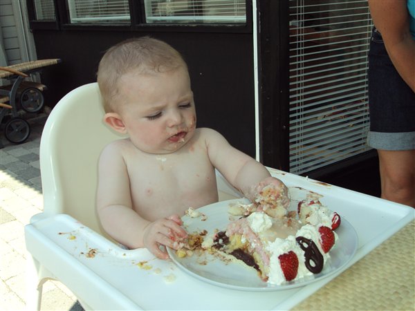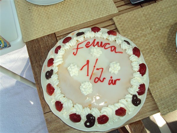 Men i vores familie er det tradition a man får en halv lagkage på sin halv års føz-dag....da vi tager til lalandia blev det i dag hun fik sin lagkage...er du vimmer hun gik til den...den blev ikke spist, men blev klasket godt og grundigt ud over det hele..det var så sjovt a se og dejligt...