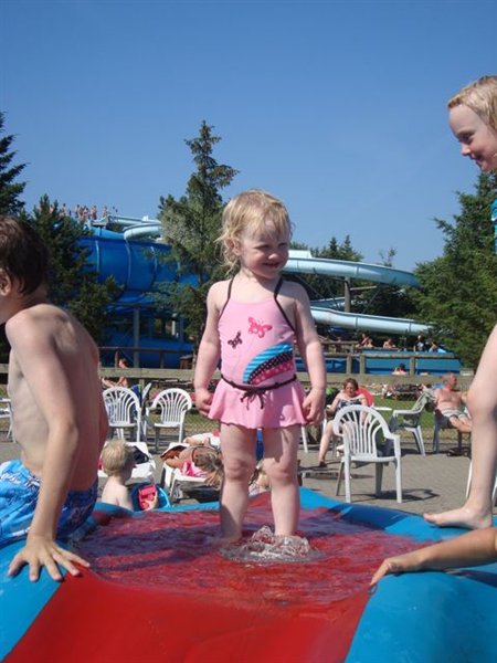 Vi plejer ikke at tage i aquaparken, når vi er i fårup sommerland, men i dag var det tilpas hot til at gøre det. Ungerne var vilde med det. Sebastian var lidt pivet mht. vandrutchebanerne, indtil jeg fik ham skubbet i gang, så fik han blod på tanden (altså på den gode måde). Signe var ikke begejstret for dem og nøjedes med én tur, mens Nanna bare ville rutche igen og igen og igen. De har da lært et nyt ord i dag: russebaan.