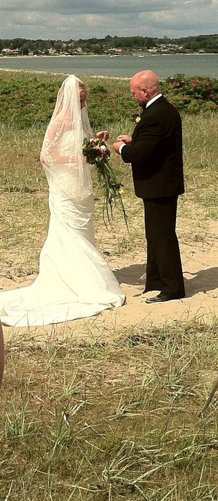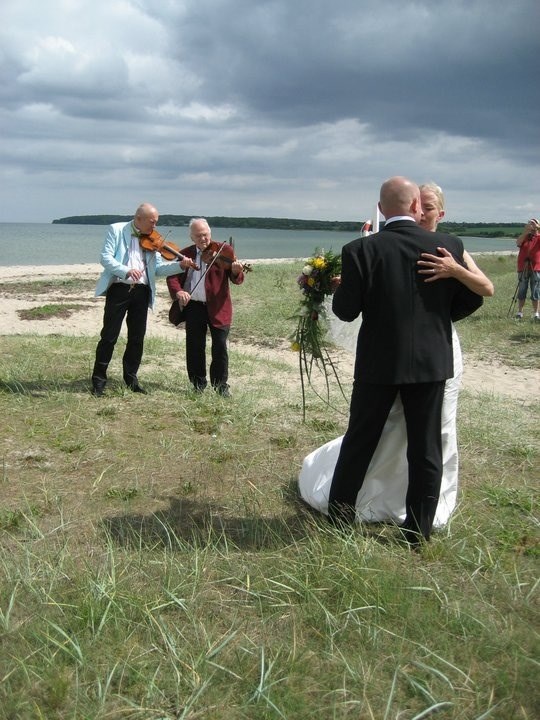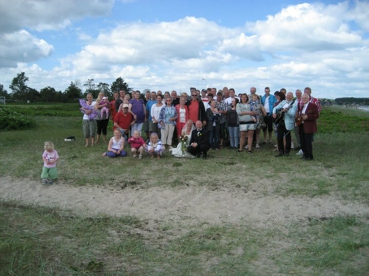 Vi havde inviteret til sommer-have-grill-fest, og da vi havde fået lidt velkomstdrink, fortalte min mand gæsterne, at de skulle følge med ham ned til en lille solgryde.. Her spillede/sang han et par sange for mig og dernæst kom en dame fra byrådet og viede os