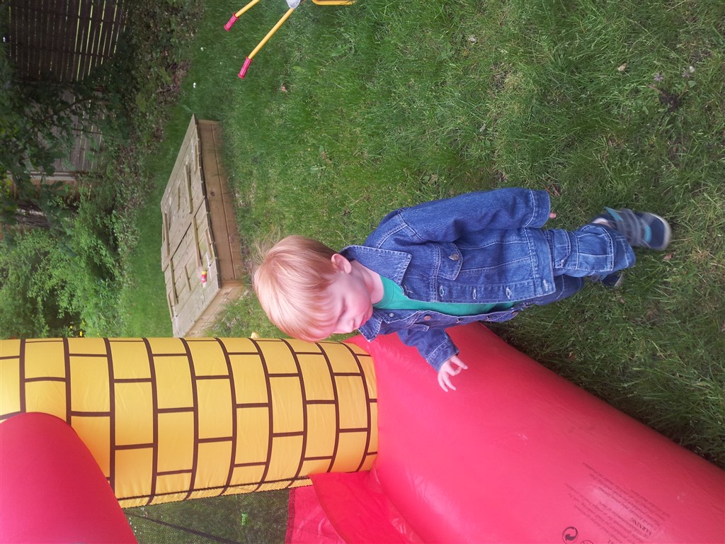 Meget glad kom far hjem og sagde vi skulle gå i haven så havde han en gave til EliasJeg vidste ingenting men vupti så stod der en fin gave i haven