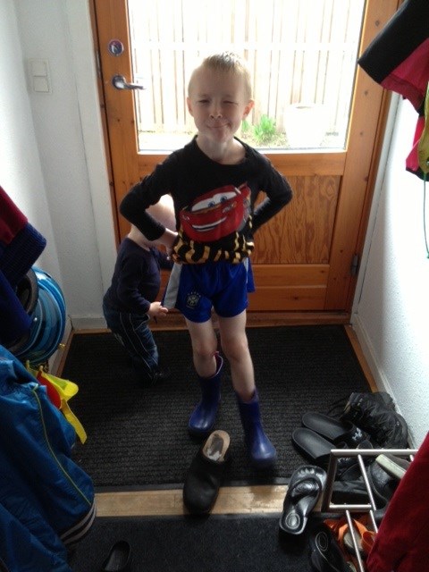 Her er vores store dreng, klar til skole, selv valgt oufittet.