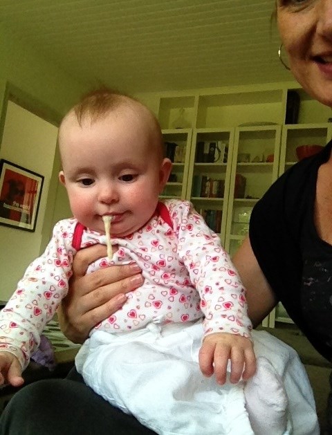 Jeg vil også være med - med to billeder jeg tog af min søn i dag. På det andet billede forsøger han at sige appelsin = siiiin.