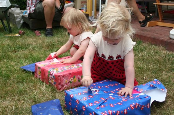 Søndag blev de fejret af hele familien. Det var så sjovt, da de pakkede gaver ud. Signe pakkede ud i stor stil, men Nannas første gave var endnu en mobiltelefon (i bedre kvalitet), og så havde hun ikke tid til mere. Så pakkede Signe Nannas gaver op og sagde: "Se Nanna! Her!" Det fungerede fint