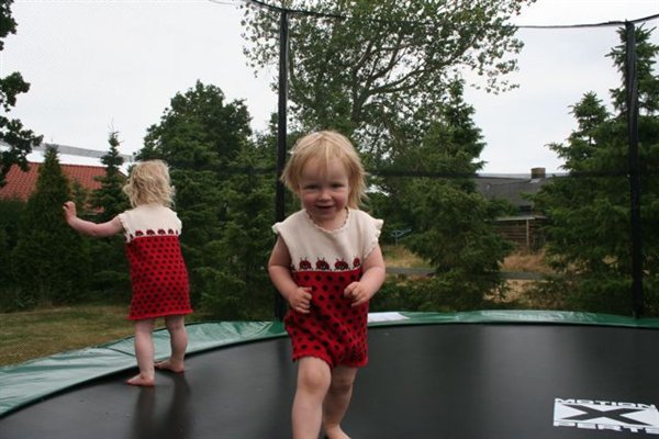Da de kom op fra middagsluren, stod der sørme en trampolin i haven. Det var lykken (også for de store...).