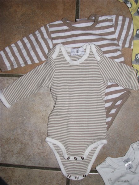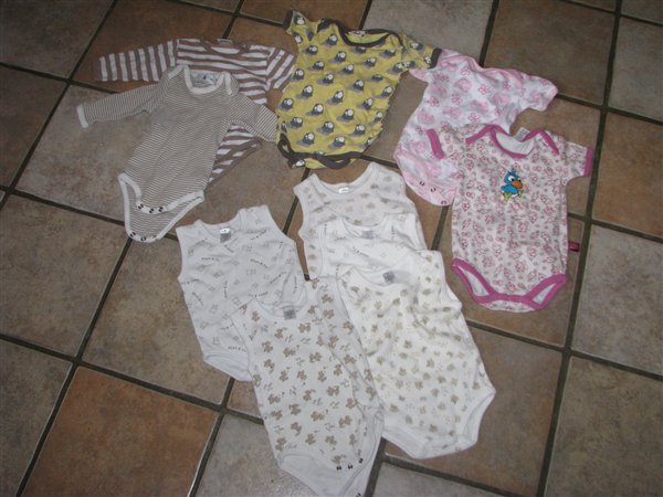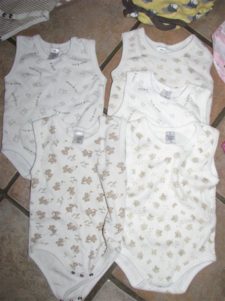 Undertrøjebodyerne = 2 af dem brugt 1-2 gange. De andre aldrig brugt kun vasket. Ingen slid eller huller eller pletter