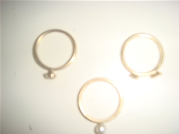 Spinning ringe, guld med 2 guld blomster, sølvsten og hvid perle.