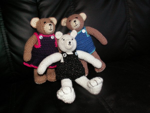 Udledt af min tråd forleden dag om håndarbejde tænkte jeg at andre måske kunne have glæde af nogle hjemmehæklede bamser til deres egne børn eller andres.