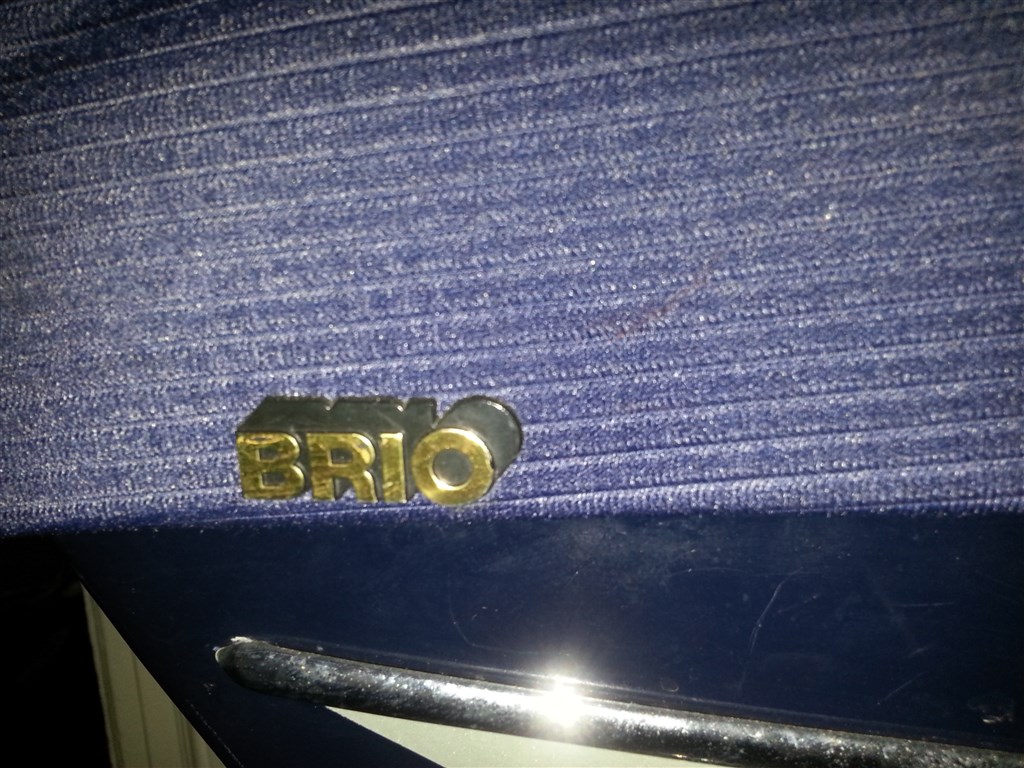På begge sider af vognen, på det nederste af kalechen, er der et BRIO-mærke som sidder MEGET godt fast = det er en BRIO-vogn. Derudover fik jeg at vide fra sælgeren at den er fra 1984. Jeg har prøvet at finde ud af hvilken BRIO-model det var, og har i min søgen fundet ud af at BRIO aldrig har lavet en barnevogn med stålkasse (som min er), og en dame fortalte mig at det i stedet lignede en Silver Cross! Derudover står der på stellet at den er lavet i England (BRIO blev produceret i Sverige).