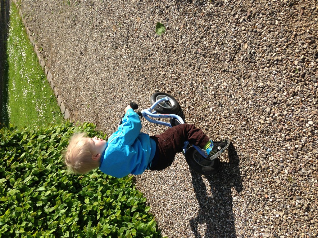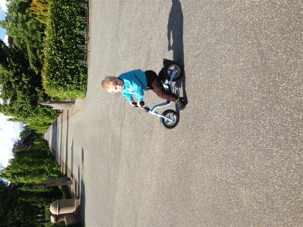 Du får lige et par billeder af min søn på sin, på billedet er sadlen sat helt ned, og har hævet den ca 1,2 cm siden, men der er stadig langt igen, så varer noget tid før den anden skal findes frem