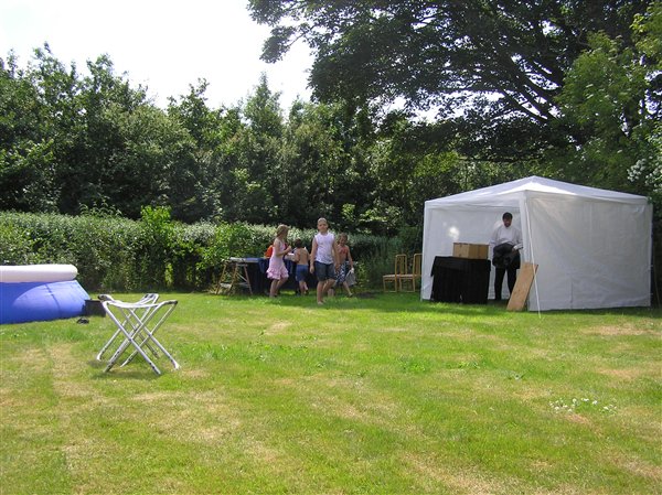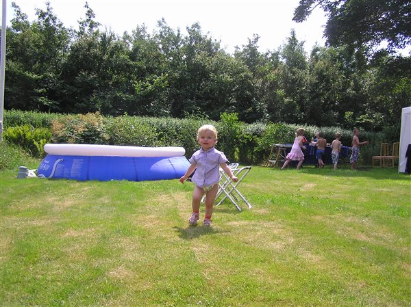 Sidste weekend blev vi inviteret ud til en kollega, Tif og jeg, hun har et lille landsted fyldt med kødkaniner, katte, grise og ja hvad dælen ved jeg...hun skulle holde en afskedsfest for hendes søns klasse, og havde sat swimmingpool op, og til slut var der en tryllefætter som kom og tryllede med duer og andet sjovt...se lige her et par af de fornøjelige billeder jeg fik fanget...