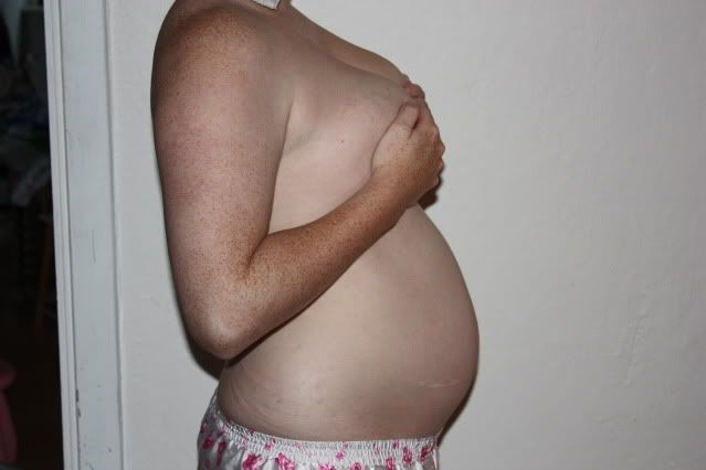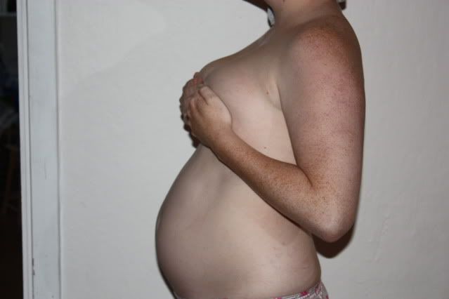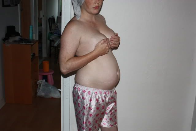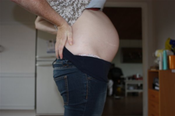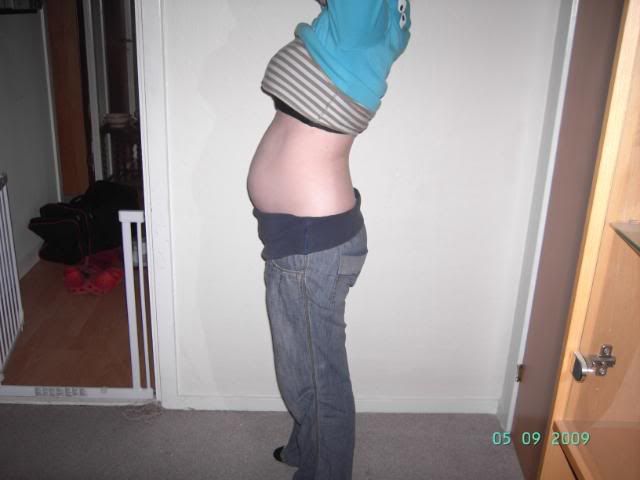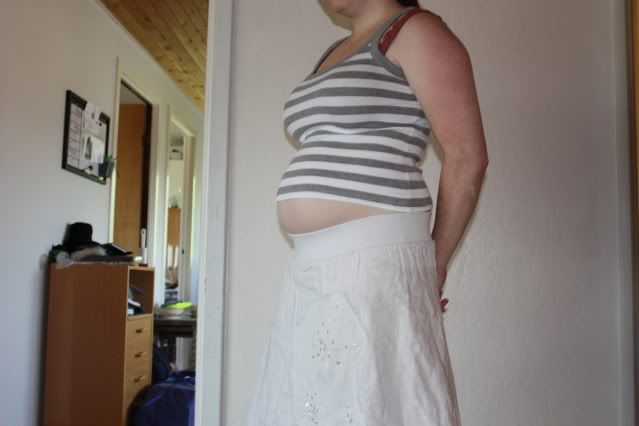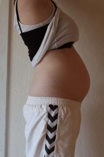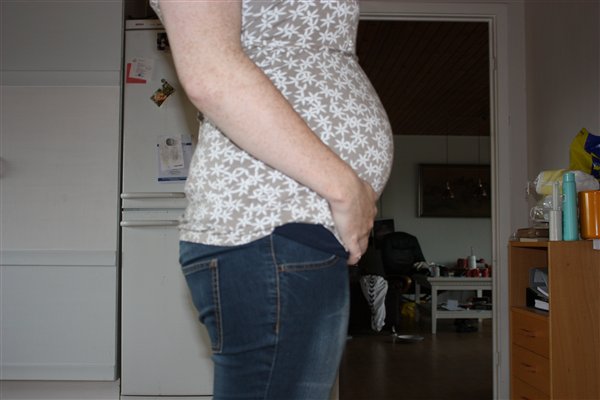 (Synes her i uge 20 at maven er begyndt at fylde mere, over navlen også ( og derved se lidt mindre ud for neden, sjov fordelig som livmoderen kan lave