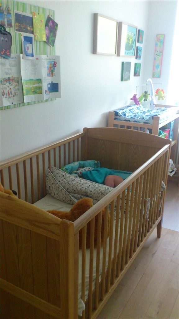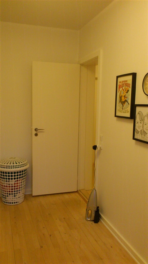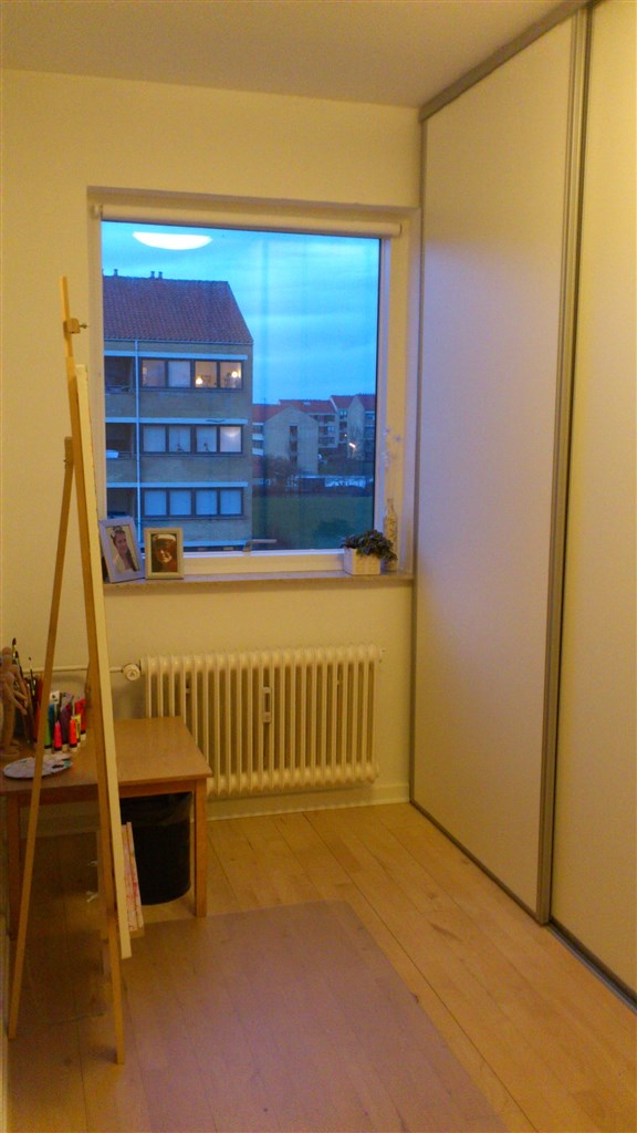 Jeg er meget til farver orker ikke alt for meget hvidt, det bliver så sterilt synes jeg. Men nu er rummet ikke ret meget større end det du ser så synes maling af væg eller tapet bliver for meget til så lille et rum. Har nogle gamle billder af rummet inden det blev til børneværrelse så du kan få en fornemmelse af størrelsen.