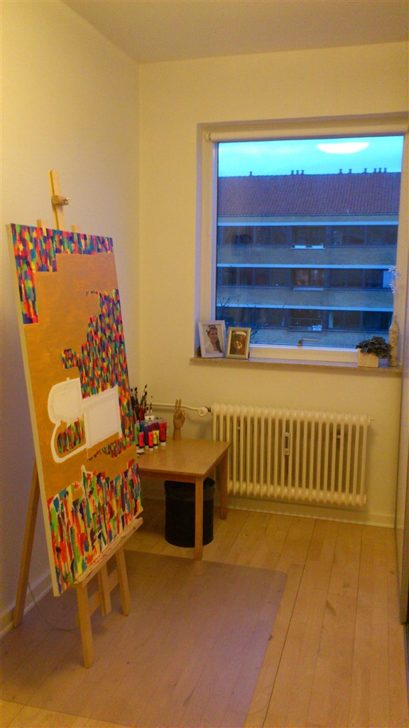 Men jeg vil mene, at den vil passe bedre i rummet som værende hvid - og igen, det behøver jo ikke være en fuld farvet væg, eller noget voldsomt tapet :-) Der findes jo 1000 slags!