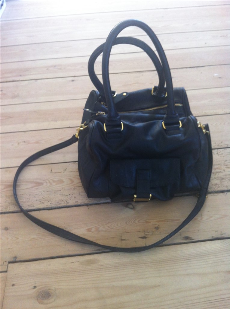 Jeg har mere end en taske - bruger dem efter behov og humør. Den jeg går med lige nu er en jeg har fået af min svigermor. Mærket er Nova og er i sort ægte læder. Der er to store rum, et med lynlås og to små uden lynlås. Det er virkelig god kvalitet.