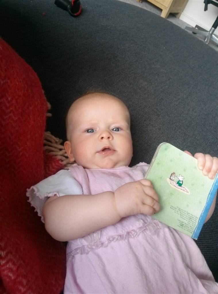 Hun er stadig en bandit med det her sovehalløj. Der er ingen rutiner i hendes søvnmønster. Feks igår stod hun op kl 7 og sov formiddagslur fra 10-11. Idag stod hun op kl. 6 og sover nu siden 8. Hun sover så en eftermiddagslur også men den er også som vinden blæser. Vi har måttet sløjfe den sidste powernap der lå ved en 17 tiden for hun ville slet, slet ikke. Så det endte med vi rokkede hende. Og det gider jeg bare ikke gøre resten af hendes sovetid så det droppede vi igen. Nu ligger hun sig så bare til nat ved en 19 tiden i stedet for 20 tiden. Så på mange områder bedre.