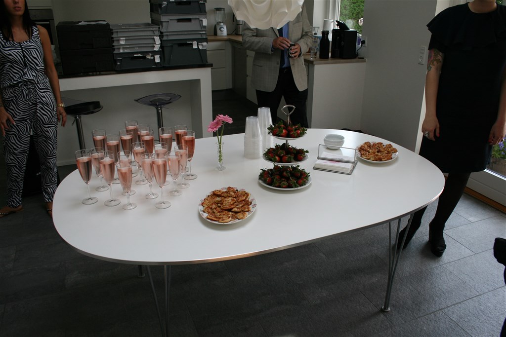 Maden bestilte vi ude fra, det samme med kagen. Det blev 3.500,- for mad, 700,- for kage (kagen betalte min kærestes forældre)