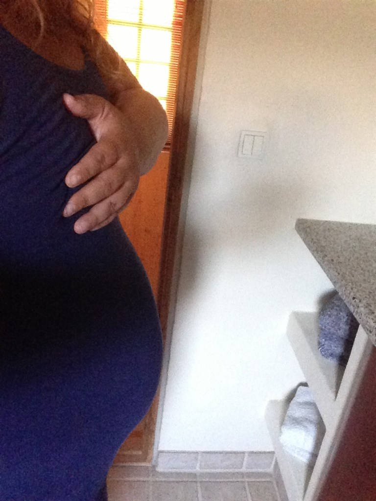 nu er jeg så også ret overvægtig, så har jo en del flomme i forvejen, men ligger han oppe på langs, så er maven stenhård, og især om aftenen hvor den vokser lidt ekstra